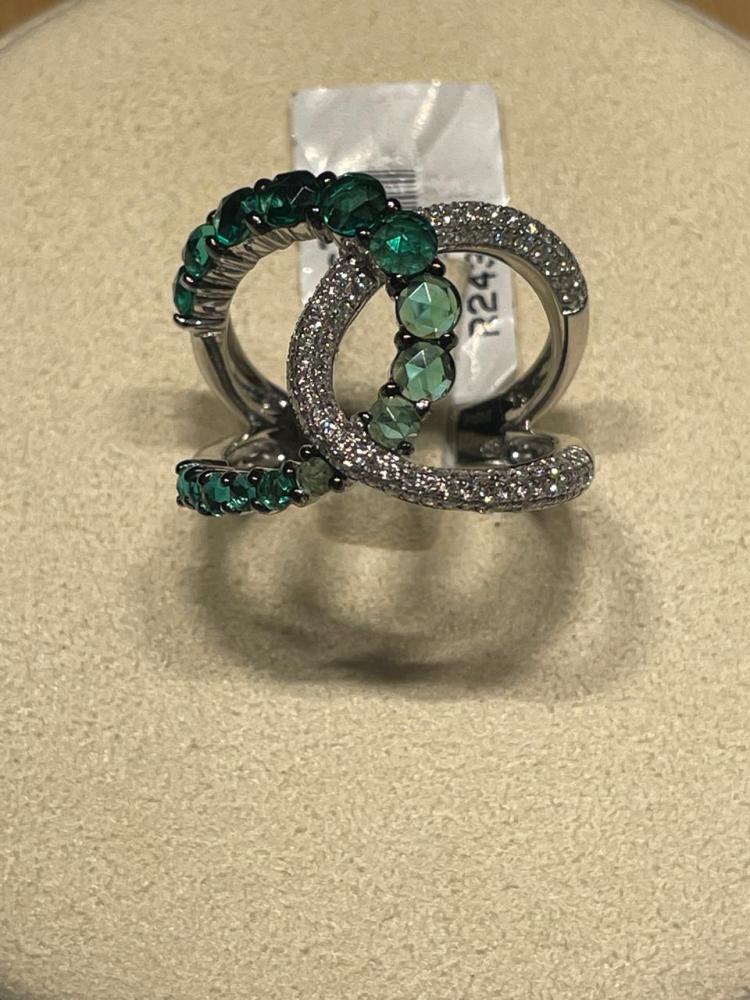 خاتم زمرد وألماس بتصميم متداخل فاخر